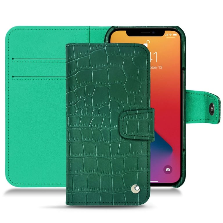 Noreve St Tropez - Apple iPhone 13 Pro Funda de piel - Solapa billetera - Verde - Cueros especiales
