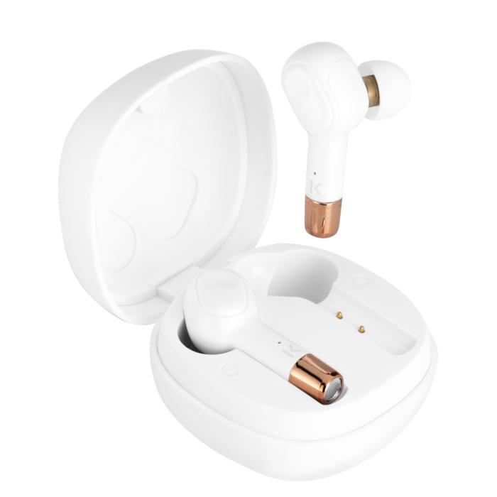 Auriculares intrauditivos inalámbricos Sonik Pro con estuche de carga, blanco perla