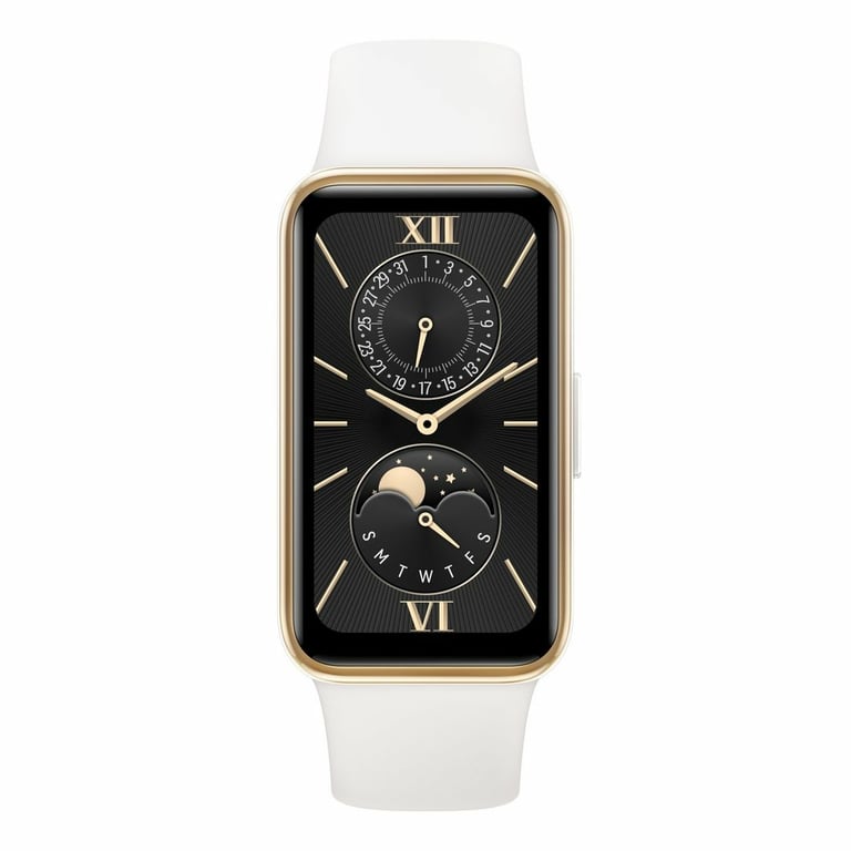 Moda con estilo Elija Starry Black o White si busca un estilo clásico. El bisel de oro brillante, cuidadosamente elaborado con un meticuloso recubrimiento de polvo de 10 capas y grabado láser, seguro que causará impresión. Pruebe Charm Pink, Lemon Yellow o Blue para descubrir su lado salvaje . El cuerpo de superficie mate del reloj presenta un acabado de recubrimiento en polvo metálico para una sensación irresistible y sutil. Deslice esta fina pulsera de 14 gramos y 8,99 mm y brille con su nuevo yo. Es perfecto para cualquier ocasión, tanto si está haciendo ejercicio, en el trabajo o simplemente paseando. Esferas de reloj impresionantes para mezclar y combinar Las esferas temáticas y AOD (Always on Display) son una fuente constante de fascinación, que transforman su correa en un reloj atemporal. La nueva y mejorada esfera Galerie incluye estilos personalizables. Puede explorar y elegir entre los innumerables modelos de la Watch Face Store, ¡para empezar cada día con un look totalmente nuevo! El sensor de luz ambiental de la pulsera ajusta automáticamente el brillo de la pantalla para ofrecer una visualización cómoda en todas las condiciones de iluminación. Monitorización de la salud mejorada HUAWEI TruSleep 4.0 Seguimiento del sueño basado en la ciencia. Despeja tu mente con un modo especial de sueño, ruido blanco, paisajes sonoros naturales y música relajante, para que puedas descansar plácidamente cada noche. Controla tu frecuencia cardiaca, la saturación de oxígeno en sangre SpO2, la frecuencia respiratoria y cualquier irregularidad respiratoria mientras duermes, para que tu mente permanezca tranquila en todo momento. También puedes probar consejos personalizados de higiene del sueño para dormir mejor desde el primer momento y lograr un mayor equilibrio en tu vida con recomendaciones de salud y forma física basadas en la ciencia. HUAWEI TruSeen 5.5 Seguimiento mejorado de la frecuencia cardiaca Sigue tu ritmo, incluso cuando corres o haces ejercicio, y obtén mejores lecturas de la frecuencia cardiaca con nuestro módulo multicanal mejorado y el algoritmo de fusión inteligente. Las lecturas de saturación de oxígeno en sangre SpO2 también son más rápidas, gracias al rendimiento y la estabilidad mejorados, impulsados por el nuevo y mejorado HUAWEI TruSeen 5.5 . Basta con levantar la muñeca para ver la frecuencia cardíaca, la saturación de oxígeno en sangre, el sueño, los niveles de estrés y mucho más. Vida sana, día a día Establece objetivos diarios de movimiento, ejercicio y bipedestación en anillos de actividad de última generación para hacer de un estilo de vida saludable tu realidad diaria. A medida que avances a lo largo del día hacia tus objetivos, recibirás recordatorios en tiempo real que te ayudarán a mantener la motivación. Mantente en forma con informes semanales que muestran cuánto has conseguido gracias a tus esfuerzos. Nada para vencer, con un sensor de nueve ejes completamente nuevo y un algoritmo innovador que identifica con precisión los cuatro estilos de natación, a la vez que monitoriza tu frecuencia cardíaca, número de brazadas, frecuencia de brazadas, número de vueltas y eficiencia o SWOLF en tiempo real. Siempre cargado cuando lo necesite ¡Cárguelo durante cinco minutos y utilícelo hasta dos días, o cárguelo completamente durante 45 minutos y utilícelo hasta dos semanas seguidas!