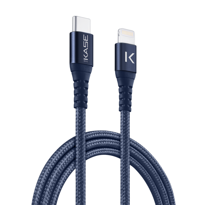 The Kase - Cable de carga/sincronización trenzado metálico USB-C a Lightning con certificación MFi de Apple (1M), azul Oxford