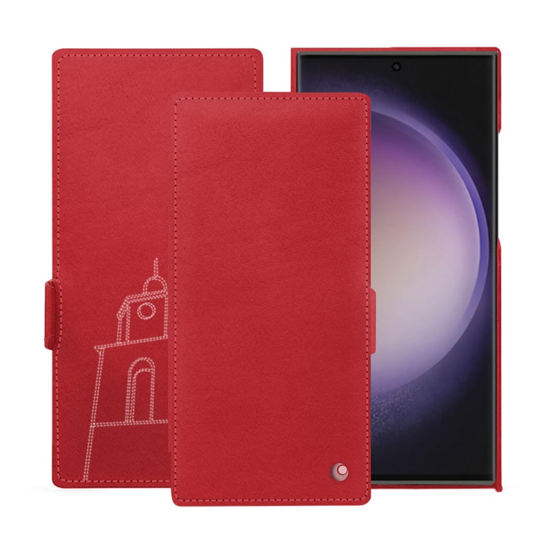 Noreve St Tropez - Funda de piel Samsung Galaxy S23 Ultra - Solapa horizontal - Rojo - Piel lisa de primera calidad
