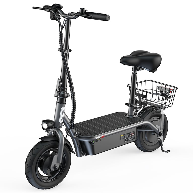 iScooter - Patinete eléctrico plegable iScooter F2 de 500 W con asiento para adultos, patinete eléctrico de 10 pulgadas con cesta y pedales anchos, 36 V y 7,8 Ah