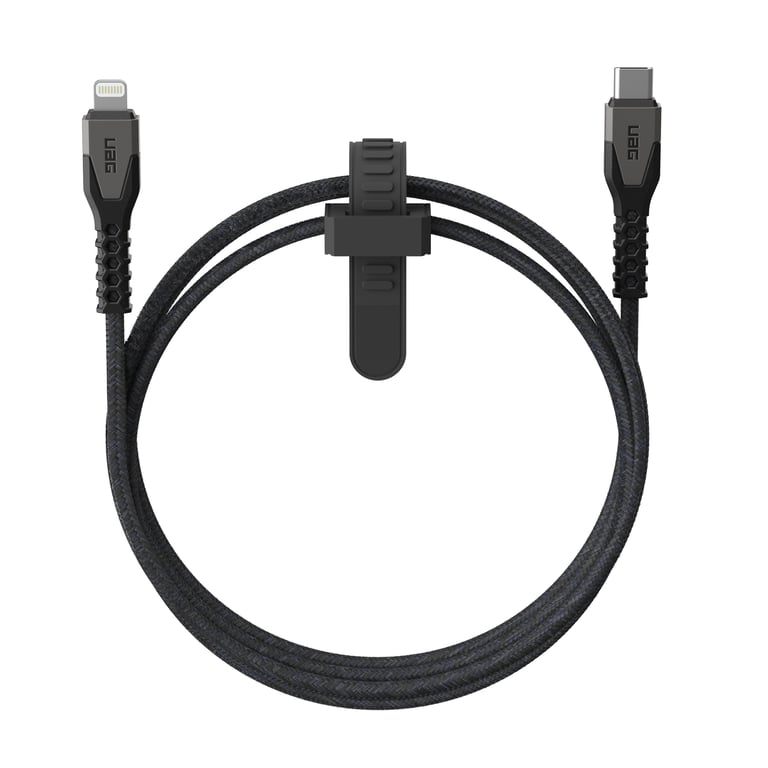 Urban Armor Gear Kevlar. Longitud de cable: 1,5 m, Conector 1: Lightning, Conector 2: USB C. Potencia: 30 W. Certificados de conformidad: Mfi. Cantidad por paquete: 1 pieza(s)