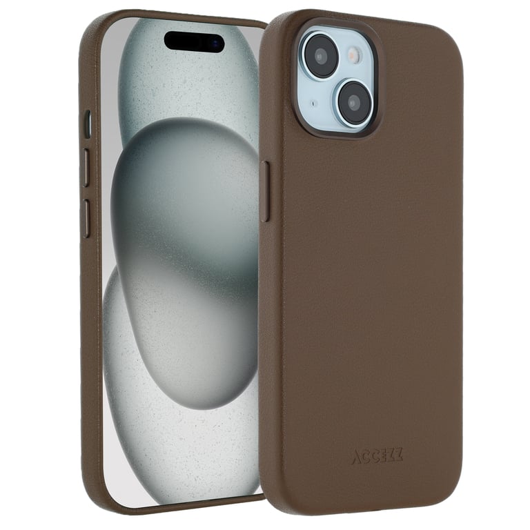Accezz Coque arrière en cuir avec MagSafe pour Apple iPhone 15 - Marron café