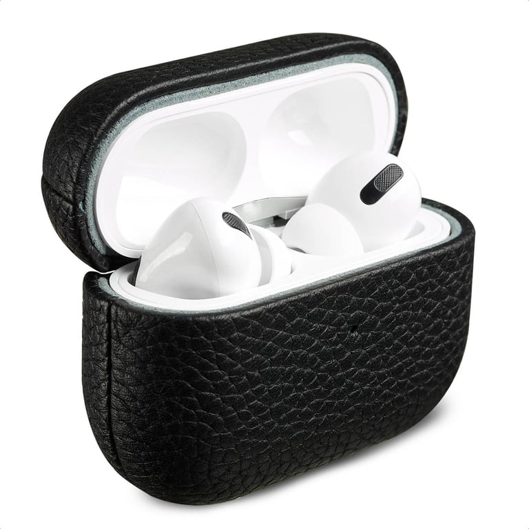 Accezz Coque en cuir véritable pour Apple AirPods Pro 2 - Noir