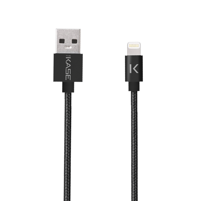 The Kase - Câble Lightning® certifié MFi Apple vers USB tressé métallisé Charge/Sync (2M), Noir