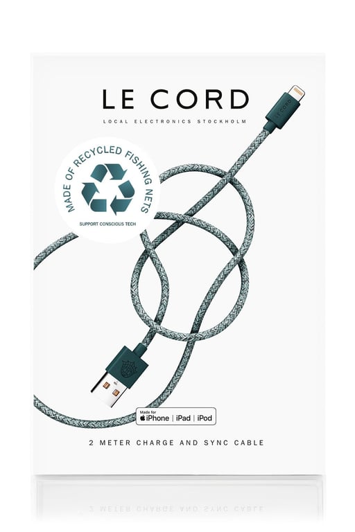 Le Cord - Câble Lightning pour iPhone Vert - 2 mètres - En filets de pêche recyclés