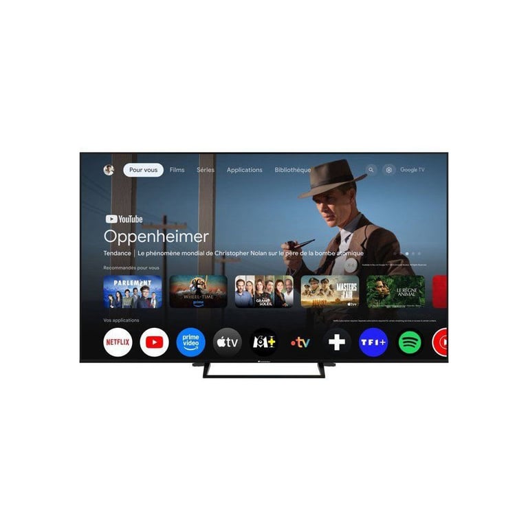 Google TV permet d'accéder facilement à YouTube, Netflix, Prime Video, Disney+, Apple TV+, Twitch, TF1+, MyCanal et d'autres services connectés via une interface fluide.