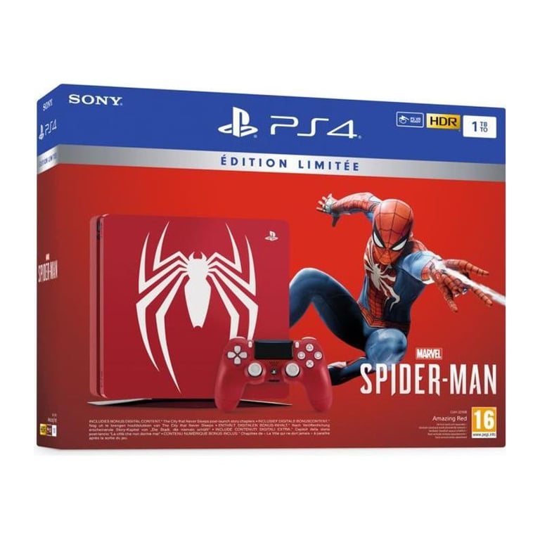 Console PS4 Slim 1To Édition Limitée Rouge Marvel s Spider Man Design + Marvel s Spider Man PlayStation Officiel