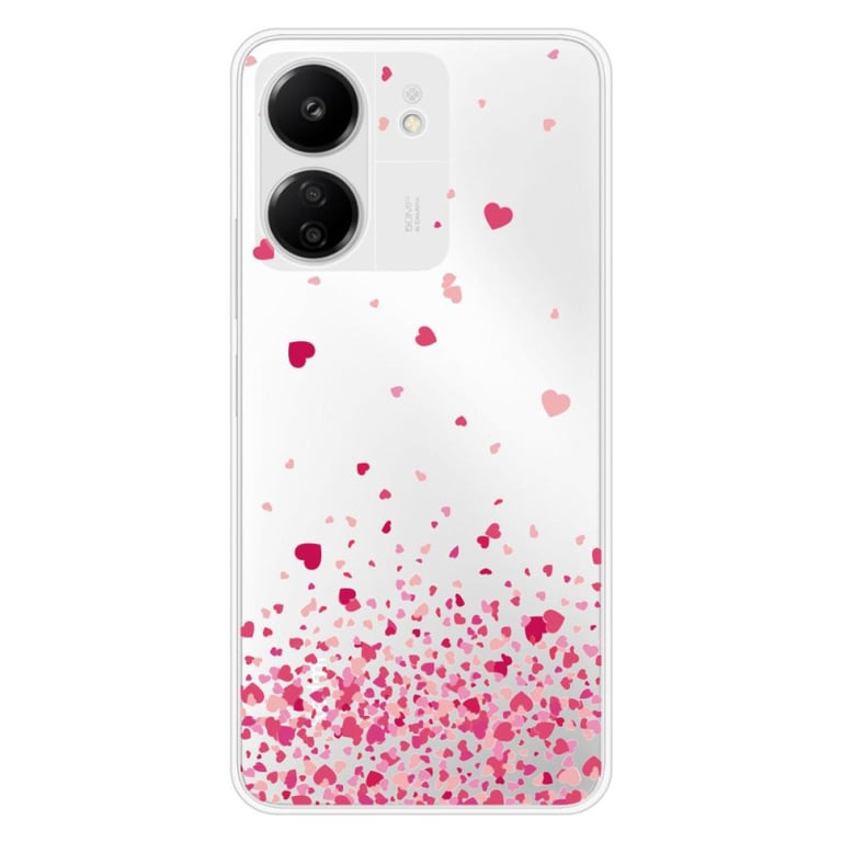 Coque en silicone - Compatible Xiaomi Redmi 13C 4G - design confettis de coeurs rose