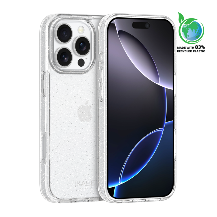 The Kase - Coque hybride étincelante invisible GEN 2.0 83% de plastique recyclé pour Apple iPhone 16 Pro Max, Transparente