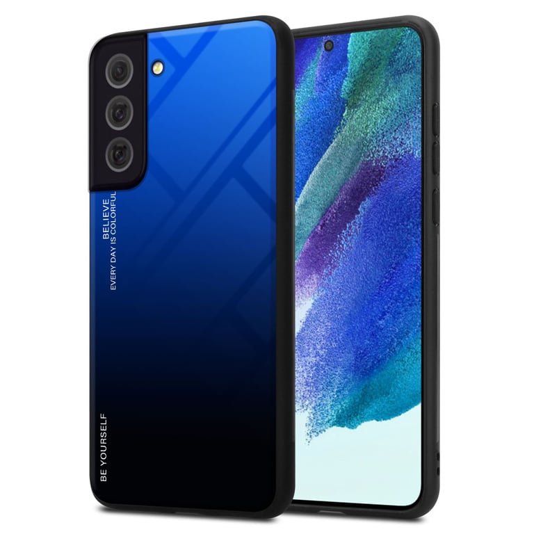 Cadorabo - Coque pour Samsung Galaxy S22 en BLEU - NOIR Housse de protection Étui bicolore en silicone TPU et dos en verre trempé