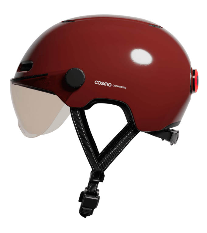 Cosmo Connected - Cosmo Fusion+ Taille M, Ruby - Casque avec éclairage Vélo Arrière Intelligent et Connecté - Feu Stop Automatique, Détection de Chute, Partage de trajet, Assurance Individuelle ALLIANZ offerte durant 1 an