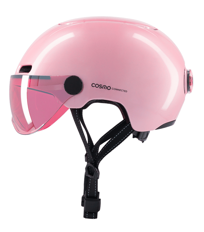 Cosmo Fusion+ Taille M, Rose Brillant - Casque avec éclairage Vélo Arrière Intelligent et Connecté - Assurance Individuelle ALLIANZ offerte durant 1 an