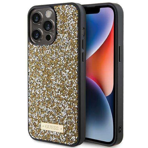 Étui Guess pour iPhone 15 Pro 6.1" jaune étui rigide Rhinestone Metal Logo