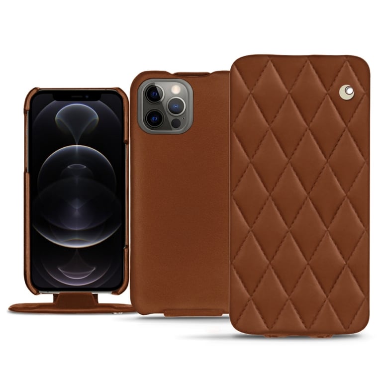 Housse cuir Apple iPhone 12 Pro Max - - Marron - Cuir lisse couture