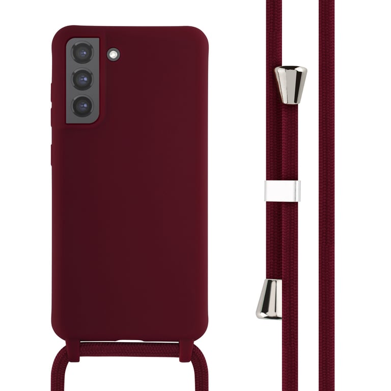 Coque en silicone avec cordon pour Samsung Galaxy S21 FE - Rouge foncé