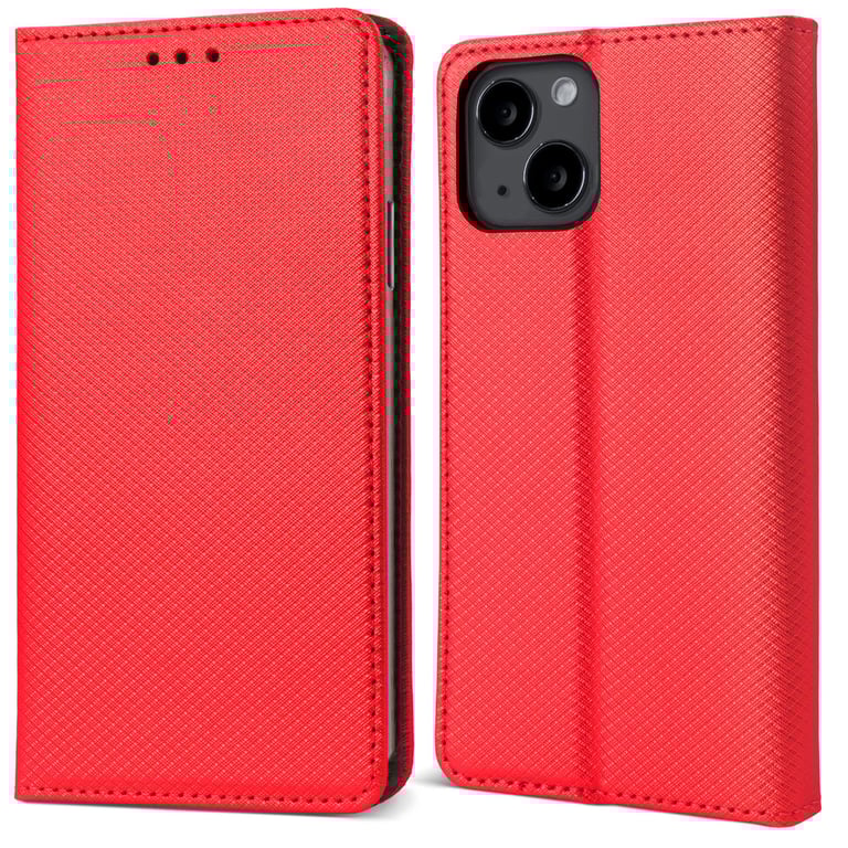Moozy - Moozy Étui à rabat pour iPhone 14, Rouge – Étui portefeuille à rabat magnétique intelligent avec porte-cartes et support, emplacements pour cartes de crédit, fonction béquille