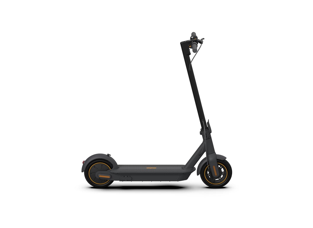 Ninebot by Segway MAX G30. Type: Scooter classique, Vitesse de pointe: 25 km/h, Poids de charge maximum: 100 kg. Puissance du moteur: 350 W, Tension des piles: 36 V, Temps de charge: 6 h. Largeur: 472 mm, Profondeur: 1167 mm, Hauteur: 1203 mm