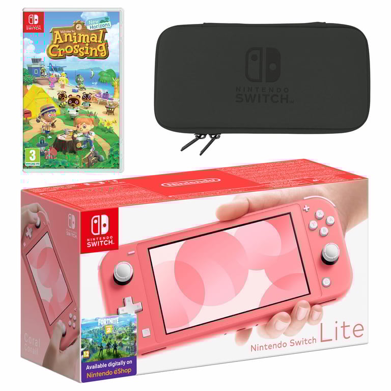 Nintendo Switch Lite (Coral) Animal Crossing: New Horizons Pack + NSO 3 months. Plateforme: Nintendo Switch Lite, Modèle de processeur: NVIDIA Custom Tegra. Couleur du produit: Corail, Technologie de contrôle des jeux: Analogique/Numérique, Touches de fonction de contrôle de jeux: Bouton d'accueil, Bouton d'allumage. Écran: LCD, Taille de l'écran: 14 cm (5.5"), Résolution de l'écran: 1280 x 720 pixels. Mémoire flash Intégrée: 32 Go, Cartes mémoire compatibles: MicroSD (TransFlash), MicroSDHC, MicroSDXC, Taille maximale de la carte mémoire: 2 To. Standards wifi: 802.11a, 802.11b, 802.11g, Wi-Fi 4 (802.11n), Wi-Fi 5 (802.11ac)