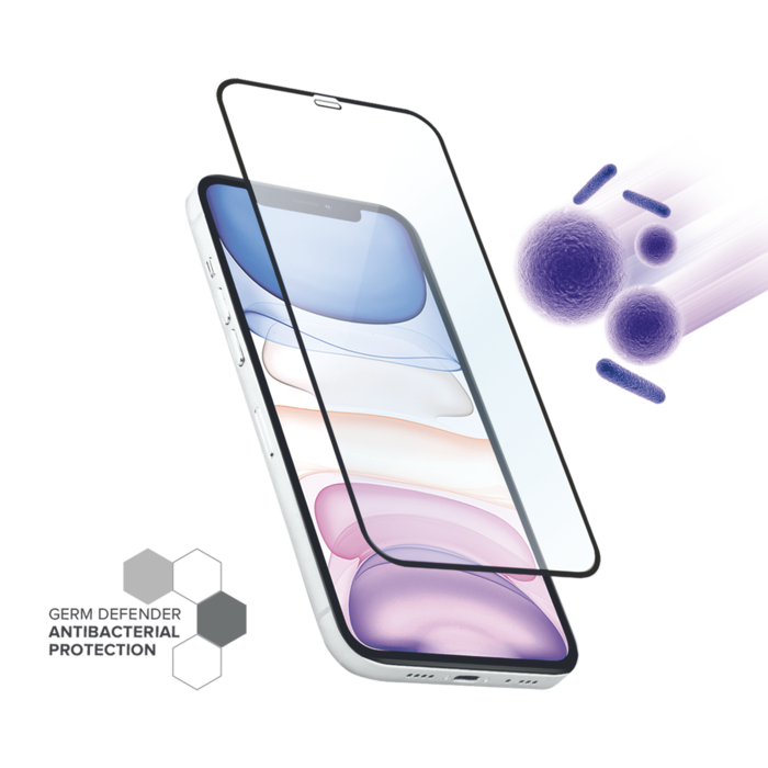 Protection d'écran antibactérienne en verre trempé ultra-résistant (100% de surface couverte) pour Apple iPhone 12/12 Pro, Noir