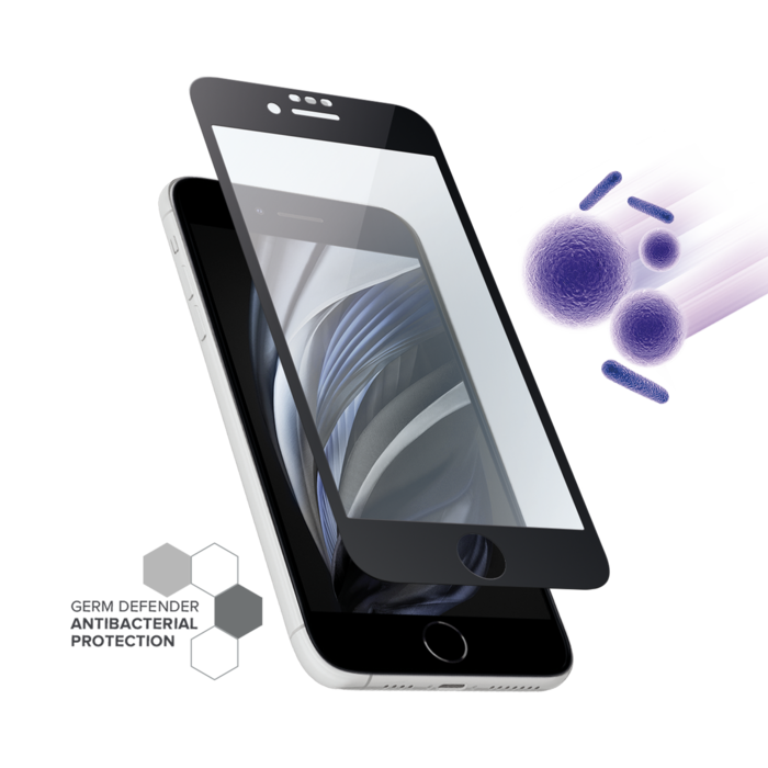 Protection d'écran antibactérienne en verre trempé ultra-résistant à bords incurvés pour Apple iPhone SE 2022, Noir