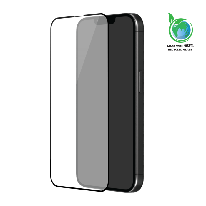 Protection d'écran en verre trempé (60% verre trempé recyclé) pour Apple iPhone 13/13 Pro/14/16e, Noir