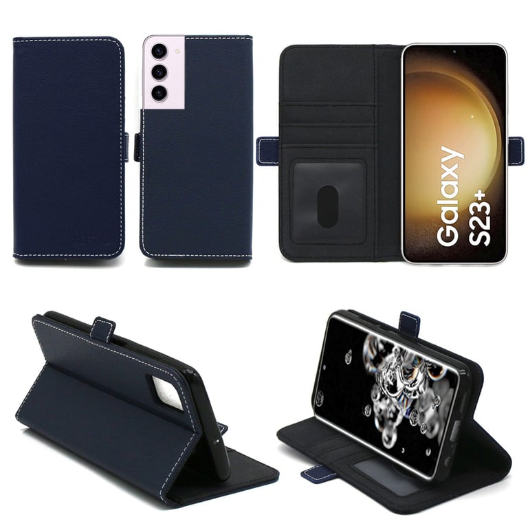 Samsung Galaxy S23 Plus / S23+ 5G Etui Protection Portefeuille bleu à Rabat avec Porte Cartes - Housse Samsung Galaxy S23 Plus / S23+ 5G Folio bleue navy Coque Silicone Antichoc Smartphone - Accessoires Pochette Case