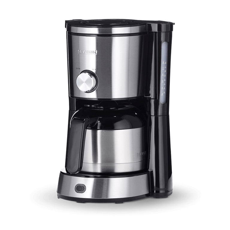 Severin KA 4845. Type de produit: Machine à café filtre, Type de cafetière: Manuel, Capacité du réservoir d'eau: 1 L, Type d'entrée à café: Café moulu, Réservoir de café: Thermos, Capacité en tasses: 8 tasses. Puissance: 1000 W. Couleur du produit: Noir, Acier inoxydable