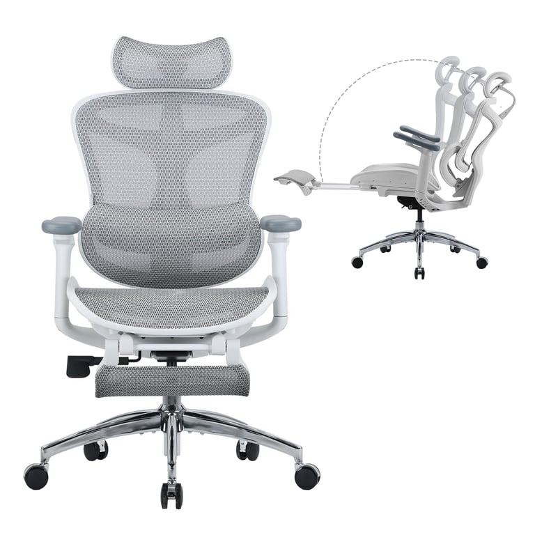 Sihoo - SIHOO Doro C300 Fauteuil de Bureau Ergonomique JT - Accoudoirs 3D, Soutien Lombaire Auto-ajustable, Mécanisme à Bascule - Dossier en Maille - 3 Positions d'Inclinaison - Blanc