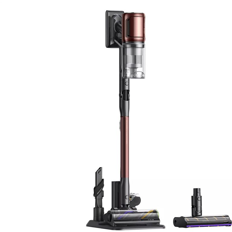 - Convertible en mode portatif grâce au tube détachable; inclut mini-brosse motorisée, suceur long/combinaison et support mural avec station d'accueil.