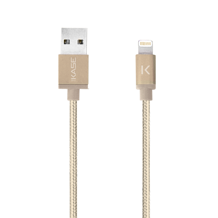 The Kase - Cavo metallico intrecciato da Lightning a USB (1 m) certificato MFi per la ricarica/sincronizzazione, oro