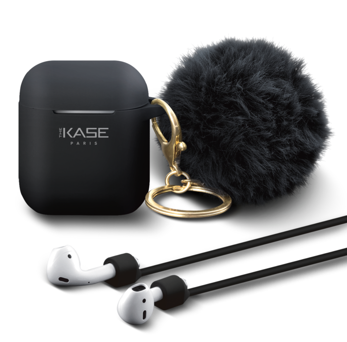 The Kase - Fashionista Pompon & Shell per Apple AirPods con cinturino magnetico automatico, nero notte