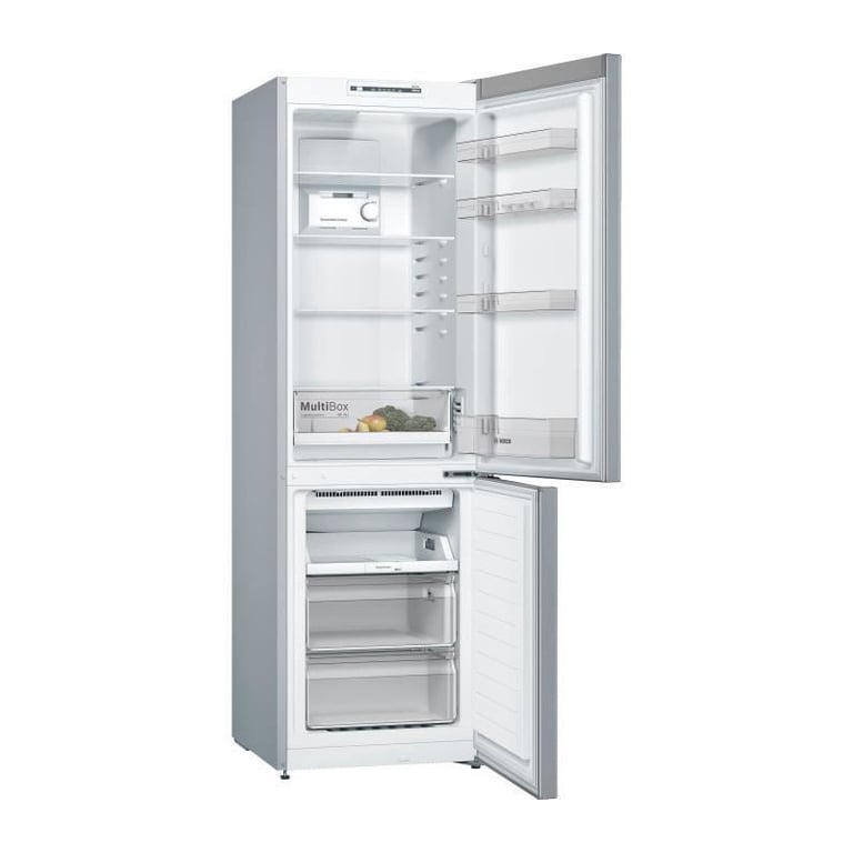 Il frigorifero combinato a libera installazione BOSCH KGN36NLEA è un modello di classe energetica E con un consumo elettrico annuo di 235 kWh. Ha un volume utile totale di 302 litri, di cui 215 litri per il frigorifero e 87 litri per il congelatore. Il sistema di raffreddamento NoFrost a flusso multiplo garantisce una conservazione ottimale degli alimenti.