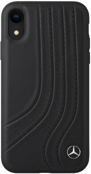 Mercedes-Benz New Bow II Custodia in vera pelle traforata per Apple iPhone XR, nero