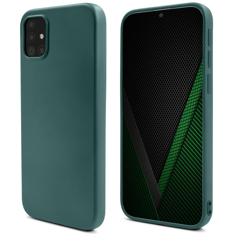 Moozy - Moozy Lifestyle. Custodia progettata per Samsung A51, verde scuro - Custodia in silicone liquido con finitura opaca e rivestimento in morbida microfibra.