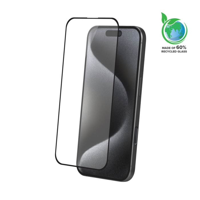 Pellicola protettiva antibatterica in vetro temperato con bordo curvo (60% di vetro temperato riciclato) per Apple iPhone 16 Pro, nero