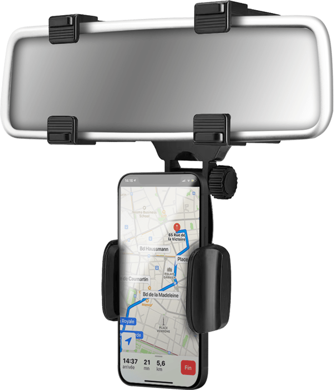 Un supporto dedicato per il tuo specchietto retrovisore, al quale puoi attaccare il tuo smartphone per non perderlo di vista e avere accesso a funzioni come il GPS. È dotato di un sistema di fissaggio ultraresistente e antiscivolo che mantiene il cellulare saldamente in posizione durante la guida e previene i graffi. Per un utilizzo ottimale, può essere regolato fino a 6,5" e ruotato di 360°.