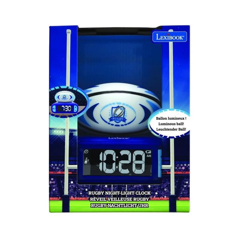 Lexibook - Sveglia digitale con luce ed effetti sonori del pallone da rugby 3D