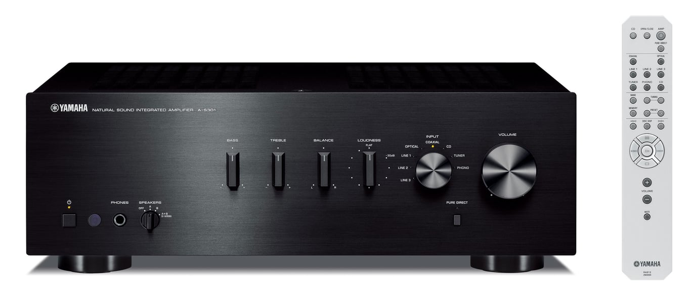 Yamaha A-S301. Canali di uscita audio: 2.0 canali, Massima potenza per canale: 95 W, THD, distorsione armonica totale: 0,019%. Consumo di energia (modalità standby): 0,5 W. Larghezza: 435 mm, Profondità: 387 mm, Altezza: 151 mm
